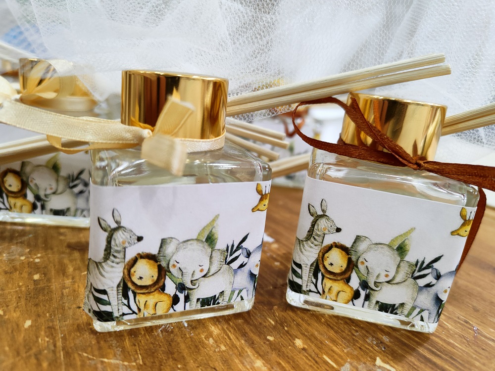 Μπουκαλάκι με αρωματικό χώρου, στικς και ετικέτα στο θέμα της επιλογής σας κατόπιν συνεννόησης.(Τελική επιλογή μετά την κατασκευή μακέτας).