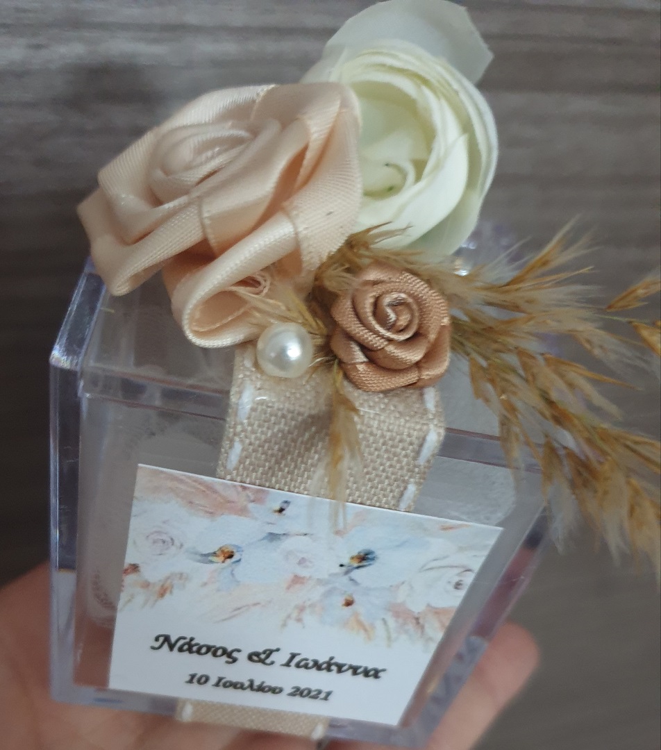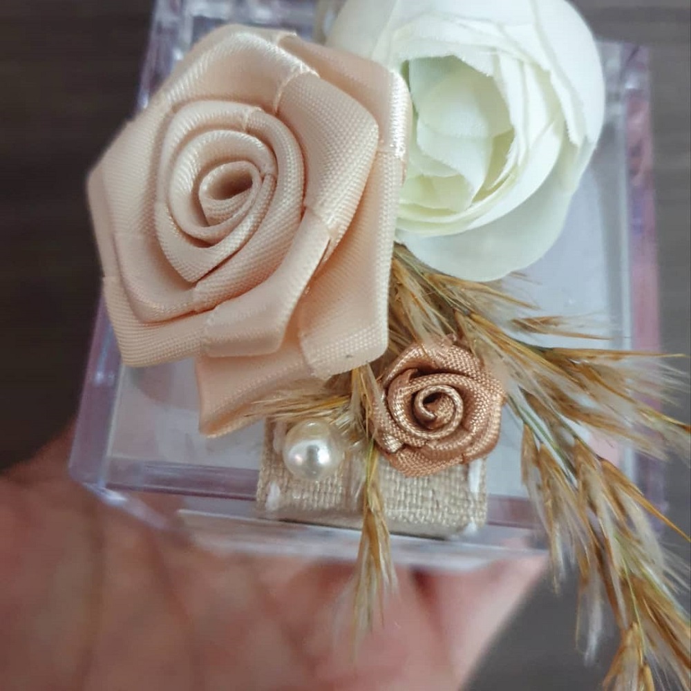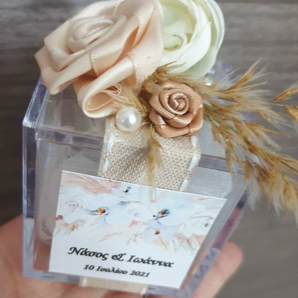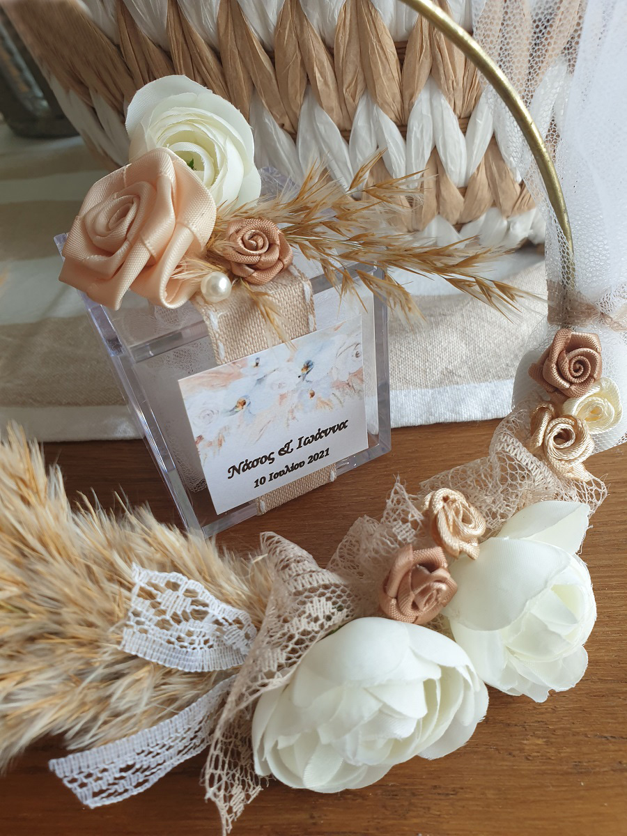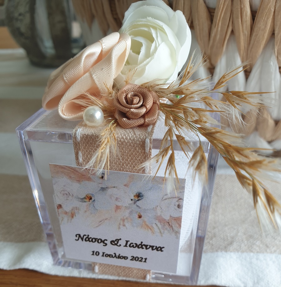 Plexiglas κουτί 6*6*6 cm με floral διακόσμηση και pampas.