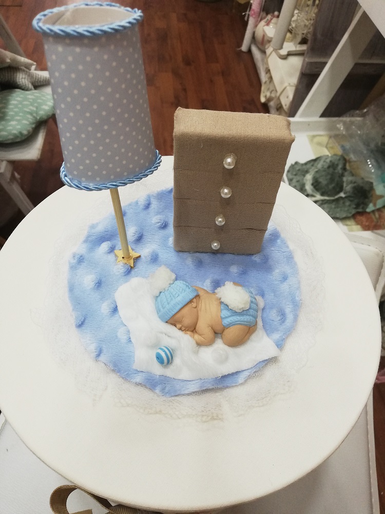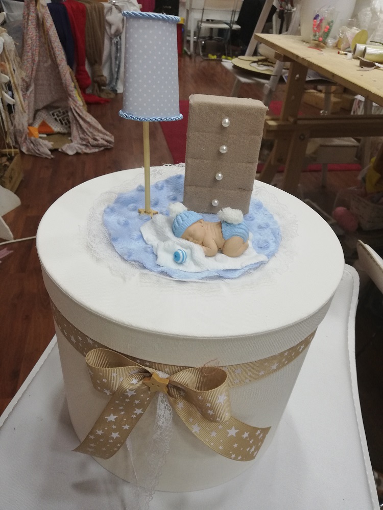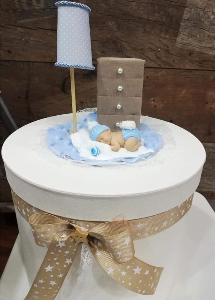 Κουτί σε σχήμα καπελιέρας με υφασμάτινη επένδυση. Το καπάκι διακοσμείται με παιδική χειροποίητη παράσταση sleeping baby και λεπτομέρειες παιδικού δωματίου. Μια ξεχωριστή ιδέα αποθήκευσης αναμνηστικών γέννησης, βάπτισης, πρώτον δώρων ή ακόμα και χρηστικών καθημερινών ειδών με τον πιο κομψό τρόπο.
