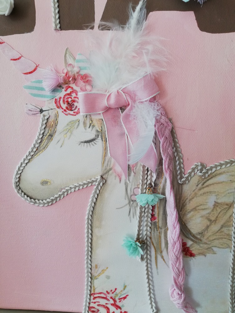Χειροποίητο καδράκι με πολλαπλές τεχνικές για το παιδικό δωμάτιο.